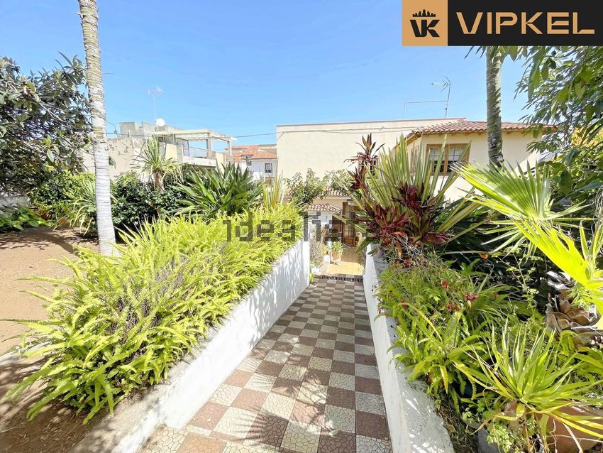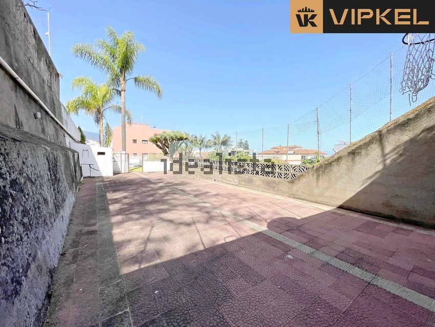 A 536 m² standalone chalet on a generous 1,900 m² plot, right in central La Orotava. Three storeys, five bedrooms, five bathrooms, garage. The garden setup is rare for an old-town property: pool, sauna, wine cellar, three vegetable patches, sports court, pergola porch. Built in 1970 and renovated since (kitchen, living areas, accessibility upgrades, solar panels on the roof).